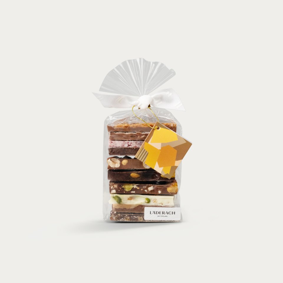 This lovingly tied FrischSchoggi Pouch is the perfect introduction to the world of fresh chocolate. Inside, you’ll find 10 of our most popular varieties, each handcrafted in our Swiss chocolate factory using premium ingredients. A little hint: enjoy your FrischSchoggi as fresh as possible – it smells and tastes best within the first few weeks. (250g)Please note: our fresh chocolate has a best-before date of two to four weeks from the order date.