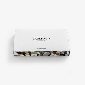 A selection of 18 exquisite pralines for an unforgettable taste experience. The box contains the following varieties of pralines (without alcohol): Honey-Nougat carré, Almond à l’ancienne, Moccatine, Walnut Marzipan, Le Noir, Almond blond, Piedmontese, Caramel Triangle, Trois Frères, Nut Trio, Nougatine, Walnut Branchli, Mousse Milk, Rigoletto,Pistache-Gianduja, Läderach Square, Nougat-Truffle and Dulce de Leche. (210g / 0.462 lbs)