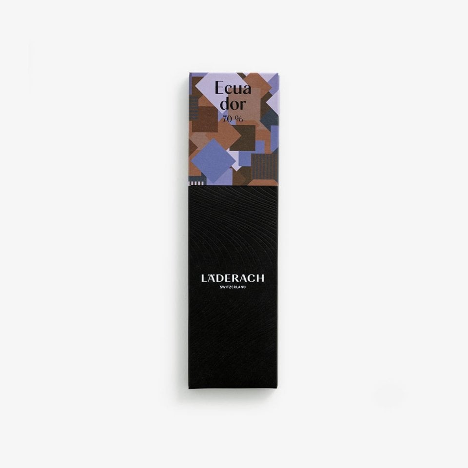 This Grand Cru Ecuador chocolate tablet is made exclusively with cocoa from northern Ecuador and contains 70% cocoa. With a rich, dark brown colour and a glossy sheen, this vegan Läderach chocolate tablet is characterised by a luscious, floral bouquet paired with a mild sweetness, toasty notes, and the unmistakable flavour of nat-ural vanilla. The nuances of earthy cocoa, black tea, hibiscus, and rose are sure to delight your taste-buds. The chocolate bar initially has a smooth, velvety mouthfeel, coupled with a lasting chocolatey finish that lingers deliciously on the palate. (64g)